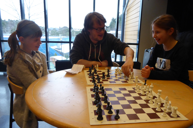Nach den Partien hatten alle Teilnehmerinnen die Möglichkeit ihre Partien mit starken Spielern zu analysieren. Neben GM Urkedal und IM Bern nahm sich auch der Turnierorganisator und FIDE-Trainer Ole Valaker Zeit dazu. Ein schönes Angebot, welches ausgiebig genutzt wurde.