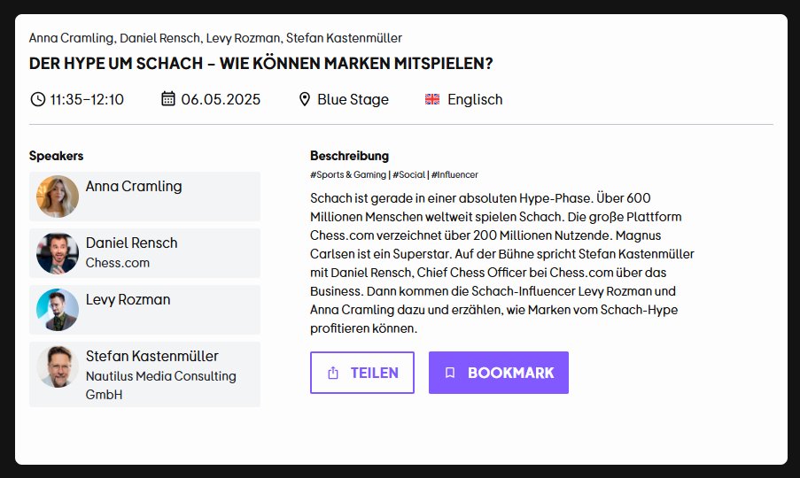 2025 trifft sich die Marketing Branche nun vom 6. und 7. Mai in den Hamburger Messehallen. Auf vier Bühnen teilen erfolgreiche Marketing Experten ihrer Erfahrungen. Auf der Blue Stage steht auch der Sport und bei diesem Thema auch das Schach im Mittelpunkt des Interesses.