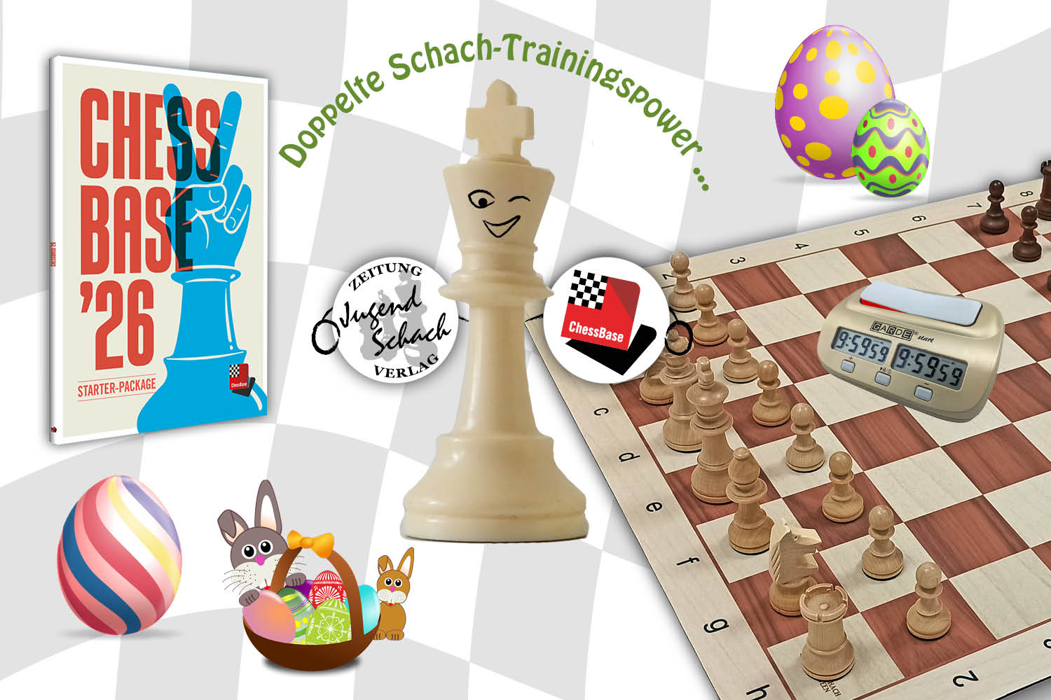 Ostergewinnspiel von JugendSchach und ChessBase: Gewinne ein Schachset oder ein ChessBase´26 Starterpaket