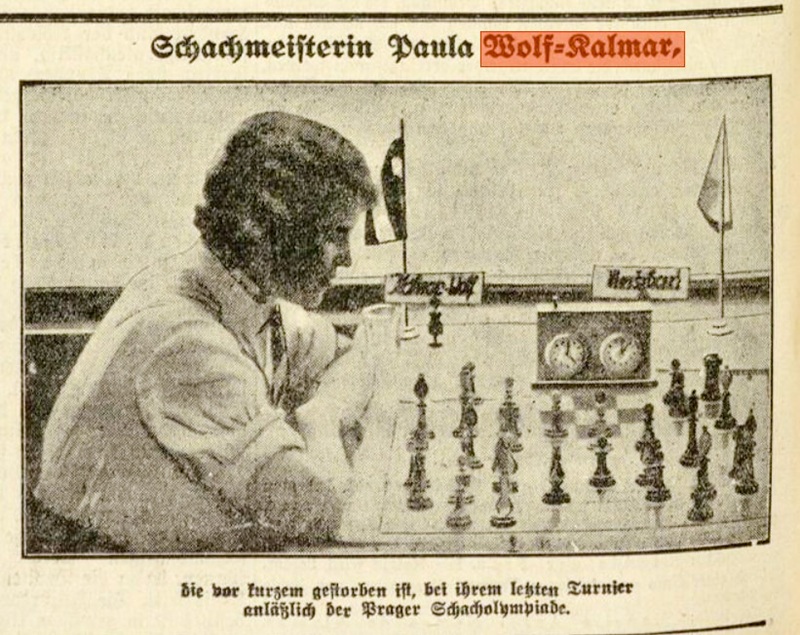 Paula Kalmar heiratete am 23. April 1925 Heinrich Wolf. Später wurde sie als Wolf-Kalmar oder Kalmar-Wolf geführt. Wir bevorzugen Wolf-Kalmar, wie es ihr Ehemann in seinen Schachkolumnen verwendete.