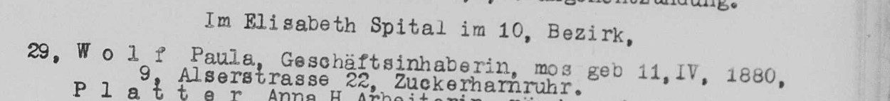 Unsere Recherchen befanden sich nun in einer Sackgasse, doch dies änderte sich, nachdem wir uns an den bekannten österreichischen Wissenschaftler und Musikologen Michael Lorenz gewandt hatten. Herr Lorenz hatte einige Zeit zuvor eine Seite online gestellt, die Teil einer Scheidungsurkunde von Paula und Heinrich Wolf war.
