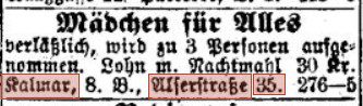 Kalmar in der Alserstraße 35, Wien VIII. Zuverlässiges Mädchen für 3 Personen gesucht.