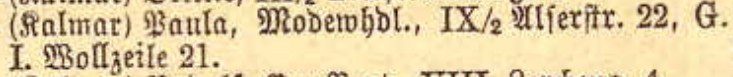 Frau Paula Kalmar 8; Frau Josefine Pohlner 4½; Frau Cilly Ausch 3½; Frau