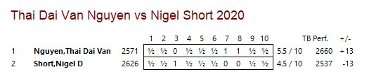 In den beiden letzten Partien konnte Short den Rückstand nicht mehr ausgleichen Dai Van Nguyen gewann das Match mit 5,5:4,5.