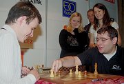 22.06.2011 – in der letzten Woche stellten die Prager Schachgesellschaft und Organisator Pavel Matocha in der tschechischen Hauptstadt ein bemerkenswertes Schachfetivalk auf die Beine. Im sportlichen Mittelpunkt stand ein Wettkampf zwischen Tschechiens Nummer Eins David Navara und dem anderen Top-Großmeister, Sergei Movsesian. Navara entschied das auf sechs Partien angelegte und sehr ausgeglichene Match durch den Gewinn der 4.Partie für sich. Um den Wettkampf herum wurden Kommentare, Lektionen und ein Simultan mit dem Schachweltmeister Viswanathan Anand angeboten. Viele prominente Gäste, nicht nur aus dem Schach, schauten sich das Spektakel an, darunter auch Tschechiens Staatspräsident Vaclav Klaus. Veranstalterseite mit vielen Bildern...Partien, Prager Schachszene...