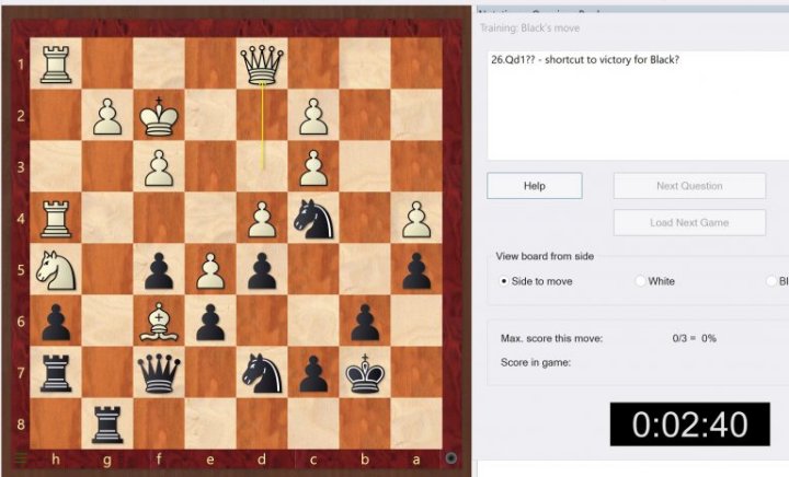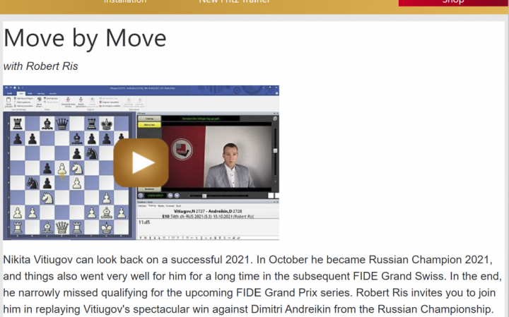 Es ist aufregend für mich zu sehen, wie mein Lieblingstrainingstool in weniger als 3 Minuten heruntergeladen werden kann!!! 3 GB intensives Schachtraining auf meiner Festplatte und bereit zum Loslegen an einem Samstagmorgen, an dem ich nicht zur Arbeit gehen muss, und ich kann endlich jeden Tropfen Schachweisheit genießen, der mir von Profis wie Robert Ris mit seiner Zug-für-Zug-Analyse einer Partie gegeben wird,