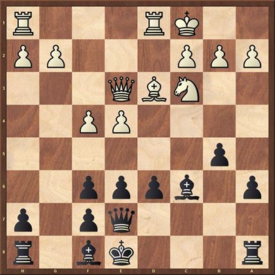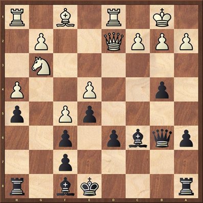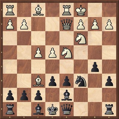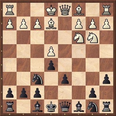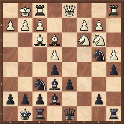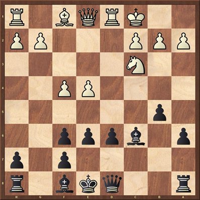 Diese Stellung ist das Herz der Empfehlung von GM Marin. Die Lage ist zweischneidig, denn die schwarze Struktur ist geschwächt. Der Bauer auf h5 ist so gut wie dem Untergang geweiht, wegen der Möglichkeit Lf1-e2 oder Dd2-e2. Und wenn der Bf8 sich nach h6 begeben möchte, hängt auch noch der Bauer d6. Als Gegenwert besitzt der Nachziehende die zwei Läufer, was insbesondere auf den schwarzen Feldern eine wichtige Rolle spielt. Der Bauer e4 ist auch anfällig. Für das Verständnis der Stellung ist ist zudem der Fakt sehr wichtig, dass der Nachziehende manchmal sogar zwei Bauern opfern muss, wenn er dafür aktives Spiel bekommt. Folglich lautet ein Plan des Nachziehenden, …Dc5,…a6-a5-a4-a3 (die schwarzen Felder!) und …Tc8 zu spielen. Die Figuren des Anziehenden stehen manchmal auch seltsam ungelenk, was die Gegenspielchancen des Nachziehenden verstärkt. Wem dieses Abspiel nicht zusagt, der kann mit der Empfehlung Marins gegen den Rauser Angriff nichts viel anfangen.