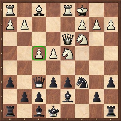 Im Vergleich mit einer weißen Dame auf d2, wo das Nehmen auf f6 mit der Dame unmöglich war wegen 10.e5! (vgl. oben), ermöglicht es der hängende Bauer f4 dem Nachziehenden hier, seine Struktur intakt zu halten.