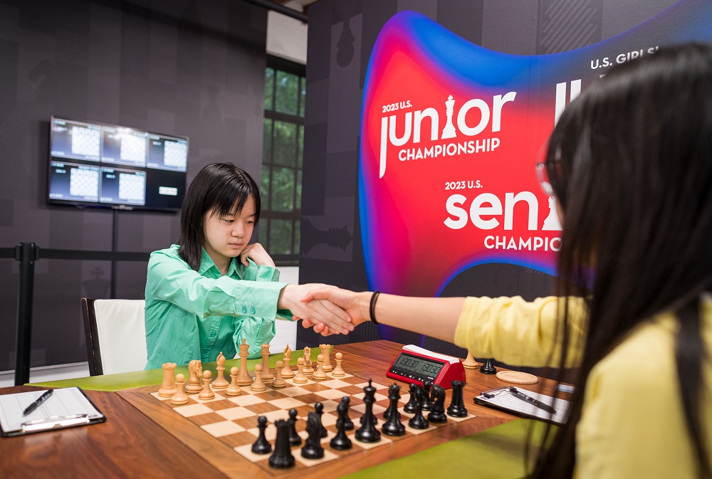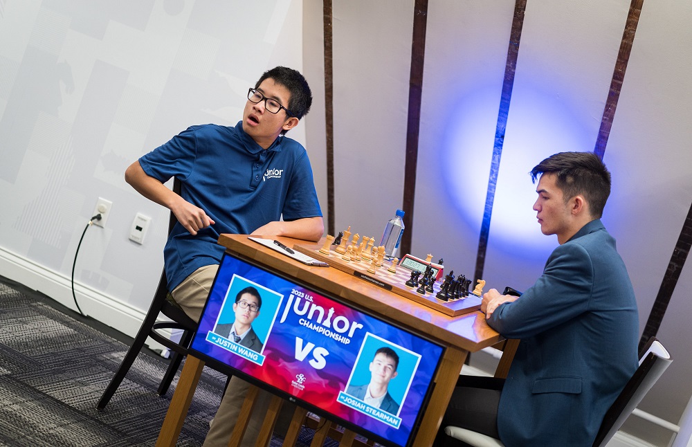 22.07.2023 – Bei den "U.S. Chess Champs" in Saint Louis sind am Freitag die Partien der 6. Runde gespielt worden. In der Seniorenmeisterschaft hat Großmeister Melikset Khachiyan nach seinem Sieg gegen IM Douglas Root mittlerweile 2 volle Punkte Vorsprung an der Tabellenspitze. Enger geht es bei den Junioren zu, wo ein aus Abhimanyu Mishra, Andrew Hong und Arthur Guo bestehendes Führungstrio die Tabelle mit einem halben Punkt Vorsprung anführt. Bei den Juniorinnen ist Alice Lee mit einem halben Punkt Vorsprung alleinige Tabellenführerin. | Fotos: Lennart Ootes