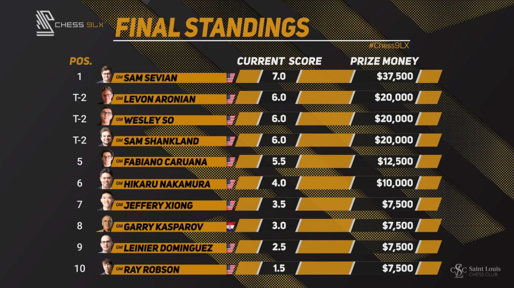 Wesley So gewann seine Schlussrundenpartie gegen Ray Robson und Levon Aronian schloss das Turnier mit einem Sieg gegen Hikaru Nakamura ab. Zusammen mit Shankland teilen sich So und Aronian den 2. bis 4. Platz.