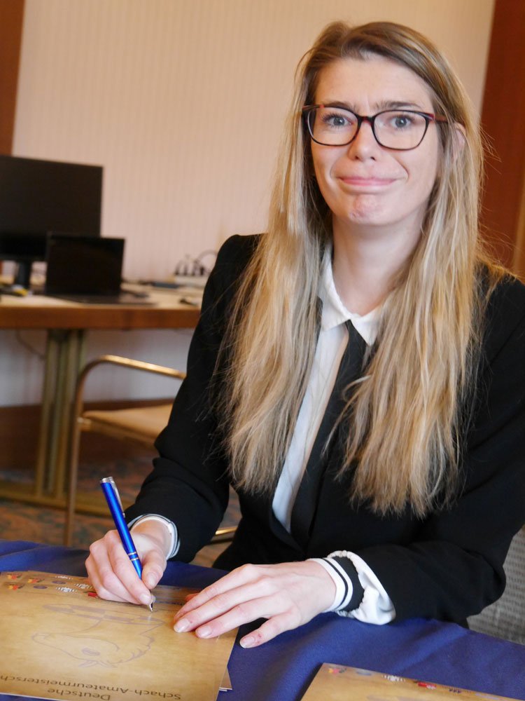 Nachdem ich wieder zurück in Deutschland war, begann ich meine Schiedsrichterausbildung. Mittlerweile bin ich Internationale Schiedsrichterin und war schon bei einigen bedeutenden FIDE- und ECU-Turnieren dabei. Dazu zählen der FIDE Women’s Grand Prix in Österreich, die Rapid- und Blitz-Mannschaftsweltmeisterschaft in Düsseldorf sowie die FIDE World Rapid & Blitz Championships in New York.