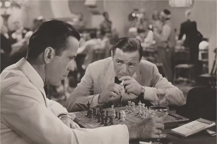 13.10.2025 – Am Freitag, den 17. Oktober, 19 Uhr, beginnt in Grafing bei München die Ausstellung "Schach und Film". Sie untersucht, wie der Film das Thema Schach im Laufe der Zeit immer wieder aufgegriffen hat, und wie Film und Fernsehen das Bild des Schachs prägen und geprägt haben. Anja Blum hat in der Süddeutschen Zeitung vorab berichtet. | Bild: Humphrey Bogart (links) und Peter Lorre in dem Filmklassiker "Casablanca" | Foto: Schach und Kulturstiftung G.H.S.