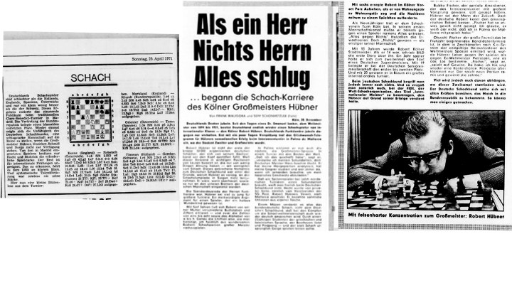 Die beiden Artikel beschäftigen sich mit unterschiedlichen Sachverhalten. Während der Bildartikel vom 20.12.1970 sich mit Robert Hübner beschäftigt, hat der Weltartikel vom 25.04.1971 das Abschneiden der deutschen Nationalmannschaft beim Claire Benedict Cup 1971 in Spanien zum Inhalt. Schauen wir uns die beiden Artikel genauer an.