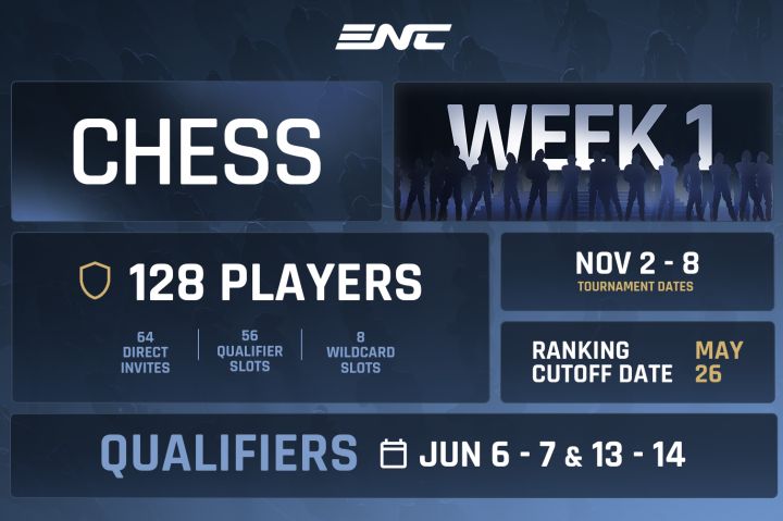 - Das Schachturnier beim ENC beginnt am 2. November 2026 und endet mit dem Playoff-Finale am 8. November 2026.