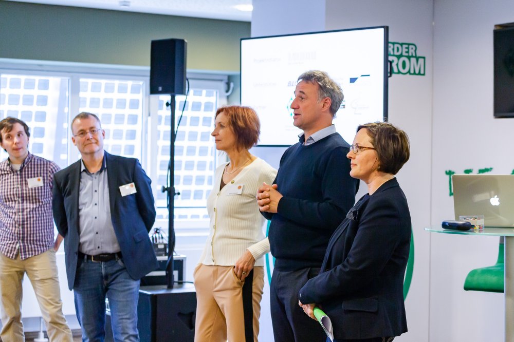 Begrüßung: v.l. Maxi Schrader, Rainer Woisin, Nikola Schroth (Schulbehörde Bremen), Marco Bode , Dr. Iris Krimmel (Uni Bremen)