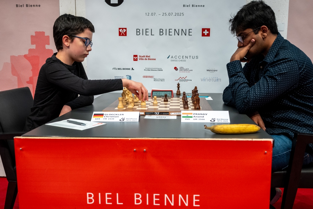Im Masters kommt es gleich zu Beginn zum Duell der als Nummer 1 und 2 Gesetzten des Turniers: Aravindh gegen Fedoseev. Mit 1 ½ Punkten Rückstand auf das Führungsduo ist es insbesondere Aravindh, der gefordert ist, auf Sieg zu spielen. Am anderen Brett trifft Murzin auf Salem. Soll noch etwas gehen für den Jüngsten im Teilnehmerfeld, der aktuell mit klarem Abstand Vierter ist, so muss Murzin mit Weiss angreifen.