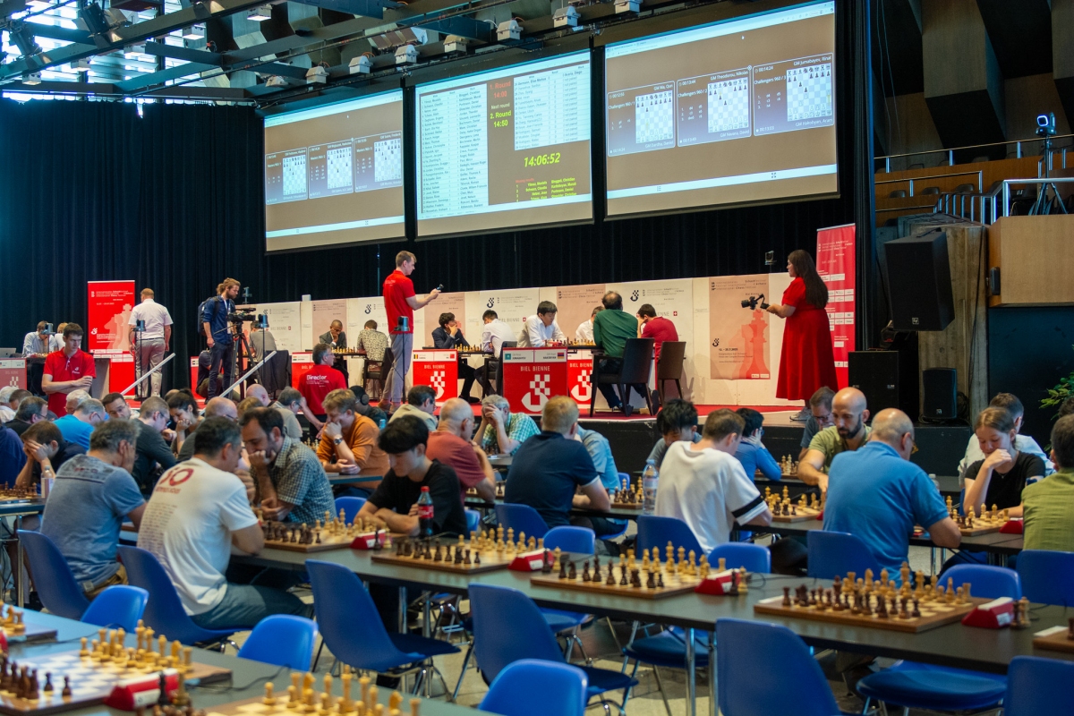Ab morgen herrscht voller Betrieb im Bieler Kongresshaus: im Großmeister-Triathlon GMT beginnt mit der ersten Runde im klassischen Schach die Königsdisziplin, im Meisterturnier MTO folgt die zweite Runde und mit dem Beginn des Allgemeinen Turniers ATO füllt sich auch die andere Hälfte auf dem Parkett des grossen Saals mit Schachspielern.