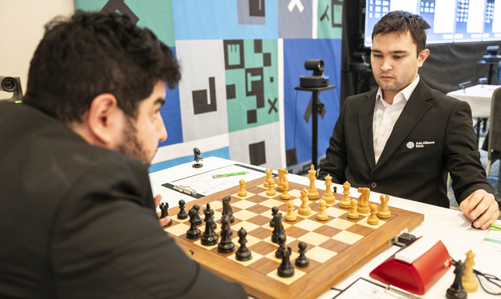 Die fünfte Partie der Runde zwischen Nodirbek Yakubboev und Parham Maghsoodloo endete Remis. | Foto: Nils Rohde