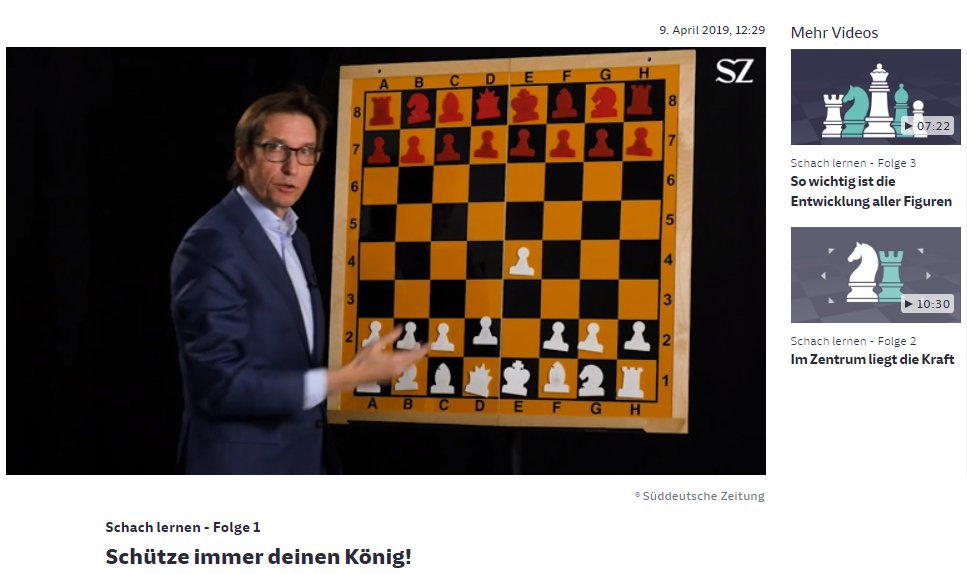 Ganz auf "Oldschool" setzt der deutsch-österreichische Großmeister und frühere Mannschaftskollege von Klaus Bischoff Stefan Kindermann in seinem Schachkursus bei der Süddeutschen Zeitung. Am ehrwürdigen Demobrett erklärt er schon einmal ein paar grundlegende Ideen und Motive beim Schach für alle, die mit den Grundregeln schon vertraut sind.