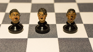Es ist wirklich kaum zu glauben: Es gibt Schachsets, die witzig sind, mitunter sogar von schwarzem englischen Humor. Ein Schachsets zeigt auf der einen Seite Hitler und seine Eva Braun, während auf der anderen Seite die junge englische Königin Elisabeth steht. Das ist Sarkasmus in Enlgand nach dem 2.Weltkrieg! Wunderbar erfrischend!