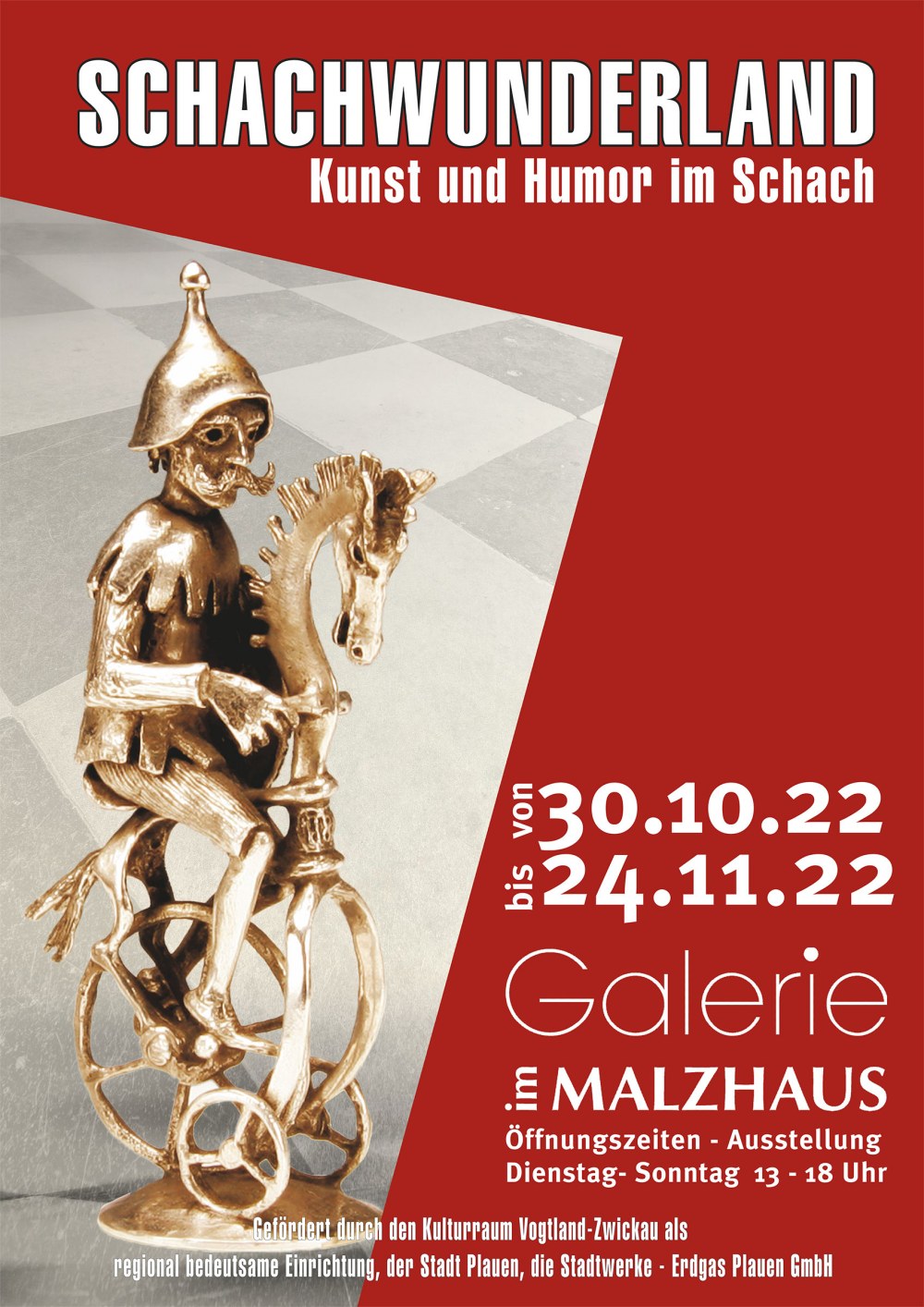 Die schönste Schachausstellung des Jahres „Schachwunderland“ in der Galerie Malzhaus lädt neugierige Besucher mit Sinn für Humor zum Sehen, Staunen und Mitmachen ein. Wann wurde jemals so viel mit und über das Schach gelacht? Die erste Ausstellung rund um den Schachhumor lockt mit lachenden, lustigen, komischen und tanzenden Schachfiguren, witzigen Cartoons, Parodien, fantasievollen Schachaufgaben die mit einer ordentlichen Prise Humor komponiert wurden sowie mit verschiedenen humorvolle Schachfilmen im hauseigenen Kino. Hervorzuheben ist der Film „Schach Matt“ in der Langfassung, der die Faszination für das Schachspiel mittels Akrobatik und Clownerie darstellt.