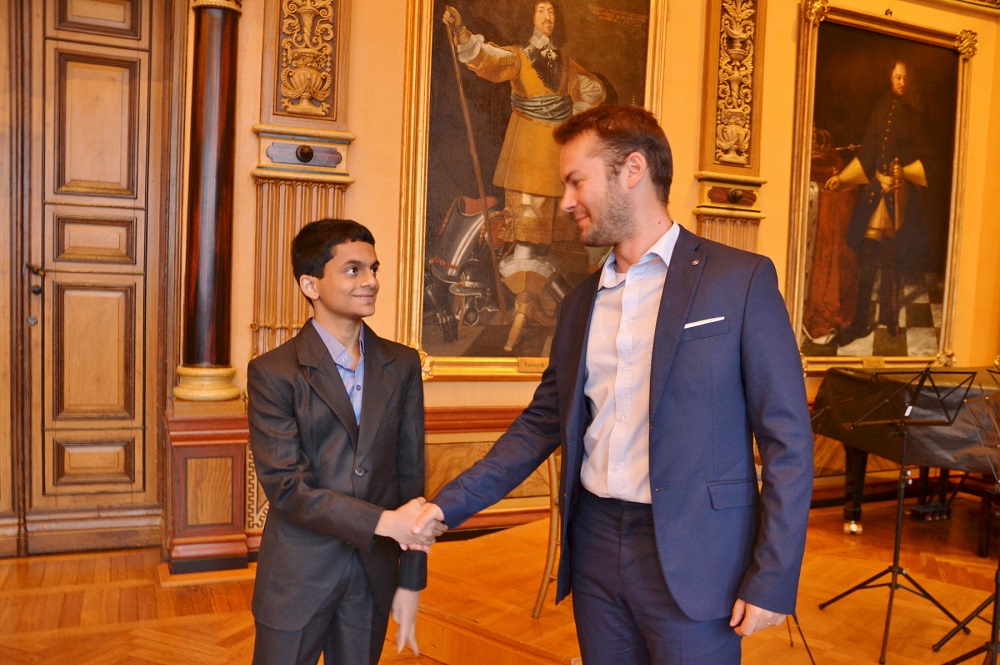 Freundliche Begrüßung bei der Eröffnungszeremonie: Nihal Sarin und Ivan Saric