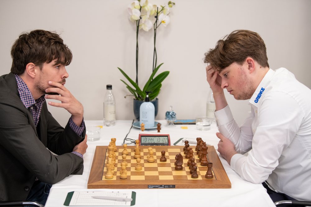 Die 6. Runde des Turniers brachte als erste im bisherigen Turnierverlauf vier Remise. Gegen Jorden van Foreest erhielt Vincent Keymer mit den schwarzen Steinen aus der Nimzoindischen Verteidigung heraus eine interessante Stellung mit Angriffschancen, weil der Niederländer lang rochiert hatte. Weiß hatte aber ebenfalls Angriffsmöglichkeiten und so entschied sich Keymer, die Partie mit einem Figurenopfer ins ewige Schach und damit ins Remis abzuwickeln.