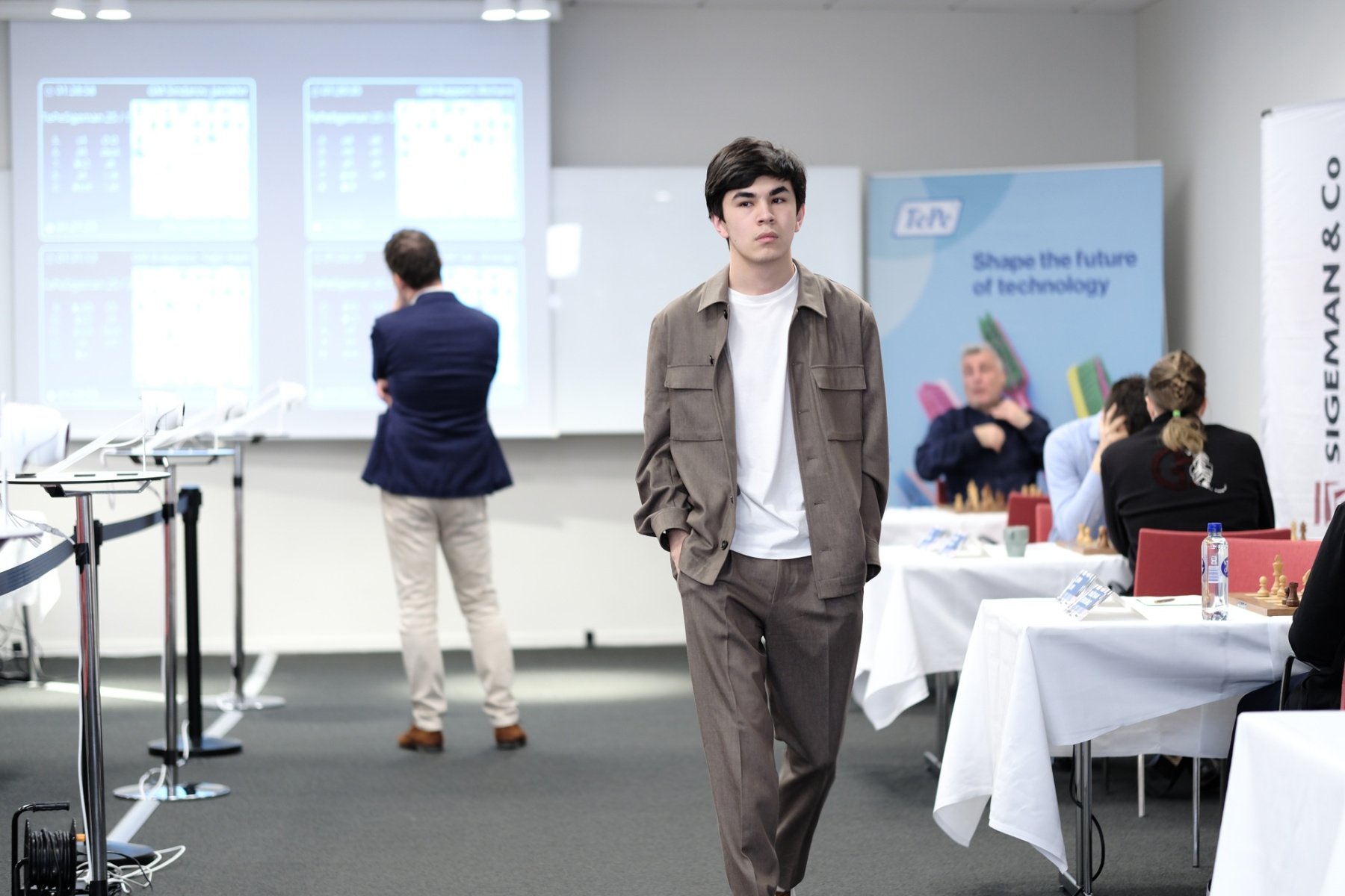 Sindarov konnte das Remisangebot guten Gewissens annehmen, da sein engster Verfolger Yagiz Kaan Erdogmus am Nebentisch mit Schwarz gegen Erwin l'Ami im Mittelspiel einen Bauern verloren hatte und ums Remis kämpfen musste. Der junge Türke gewann seinen Bauern zwar zurück, war aber weit davon entfernt, die Partie vielleicht zu gewinnen, was notwendig gewesen wäre, um Sindarov noch einzuholen.