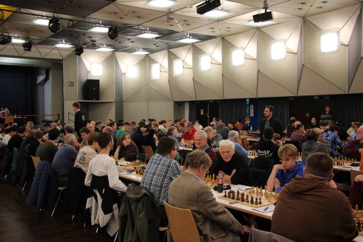Münster-Hiltrup, ein Stadtteil am Rand von Münster, wurde zum schachlichen Zentrum Deutschlands: Im Spielsaal herrschte konzentrierte Ruhe – wenn nicht gerade einmal die Türen zu stark ins Schloss geworfen wurden. Das Münsterland Open trug gleich zwei Akte aus, die Runden 2 und 3, und parallel startete das Challengers mit Runde 1.