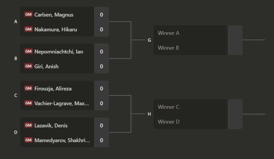 Vier eingeladene Spieler (Carlsen, Firouzja, Lazavik und Nepomniachtchi).