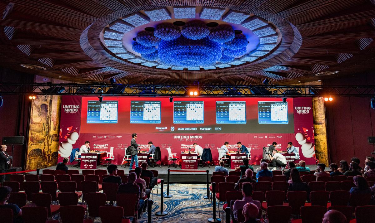 Die Grand Chess Tour 2025 hat kurz nach dem Superbet Rapid & Blitz in Warschau nun ihre zweite Station erreicht, die rumänische Hauptstadt Bukarest, und trägt dort mit zehn Spielern ein Turnier mit klassischer Bedenkzeit aus. Fabiano Caruana und Hikaru Nakamura, die beiden Besten der Weltrangliste sind nicht dabei, aber mit Gukesh spielt der Weltmeister mit, aktuell die Nummer Drei in der FIDE-Eloliste, und mit Fabiano Caruana, Nodirbek Abdusattorov, Praggnanandhaa die Spieler auf den Plätzen fünf bis sieben. Hinzu kommen Alireza Firouzja (9), Wesley So (11), Levon Aronian (13), Jan-Krzysztof Duda (16), Maxime Vachier-Lagrave (23) und als Vertreter des Gastgeberlandes Bogdan-Daniel Deac (54). Das Turnier ist also ganz ausgezeichnet besetzt.
