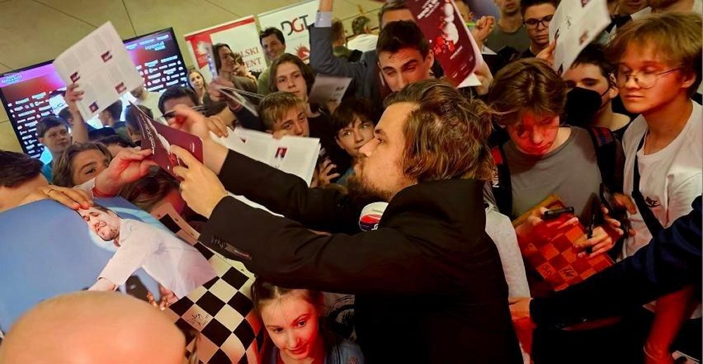 Magnus Carlsen gave a short interview on his victory vs Bogdan Deac and his hairstyle😉.#SuperbetRapidBlitzPoland #GrandChessTour #magnuscarlsen pic.twitter.com/7YeIsD1QNr