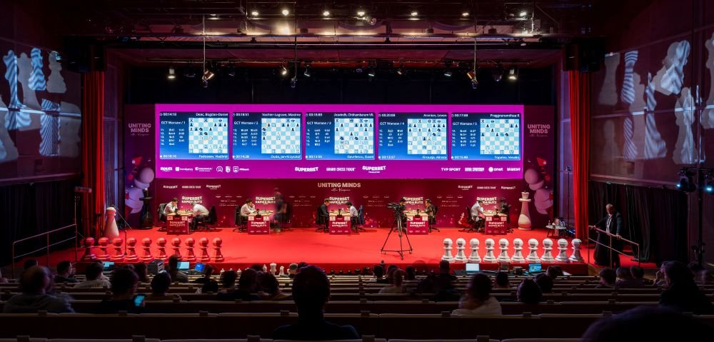 Der Schnellschachteil des Superbet Rapid & Blitz Poland 2025 endete am Montag Abend mit dem Gleichstand von drei Spielern an der Spitze. Alireza Firouzja, Aravindh Chithambaram und Vladimir Fedoseev kamen alle drei nach neun Runden auf je 11 Punkte. Die Ergebnisse im Schnellschach werden doppelt gezählt.
