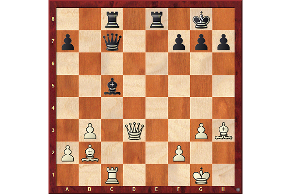 29.02.2020 – In der Diagrammstellung ist 26...Ted8! für Schwarz der richtige Weg, die weiße Dame anzugreifen, was sich nach 27.Dc3 konkret zeigt. Nämlich wie?