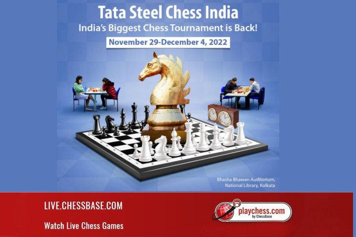 Das Tata Steel Chess India Rapid & Blitz, Indiens größtes Schachturnier, findet in diesem Jahr vom 29. November bis 4. Dezember statt. Neben dem offenen Turnier wird ein Frauenturnier ausgetragen. Austragungsort ist die Nationalbibliothek von Indien in Kolkata (Belvedere Road, Block A, Kolkata).