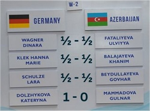Das deutsche Frauenteam startete als Nummer 6 der Setzliste ins Turnier, aber nach vier Runden liegt die Mannschaft mit vier Siegen zusammen mit Polen mit 8 aus 8 an der Spitze. In Runde vier kamen die deutschen Frauen zu einem knappen 2,5-1,5 Sieg gegen Aserbaidschan. An den Brettern eins bis drei spielten Dinara Wagner, Hanna Marie Klek und Lara Schulze Remis, aber Brett vier sorgte Kateryna Dolzhykova in der letzten Partie des Kampfs in einem komplizierten Endspiel für den entscheidenden Punkt.