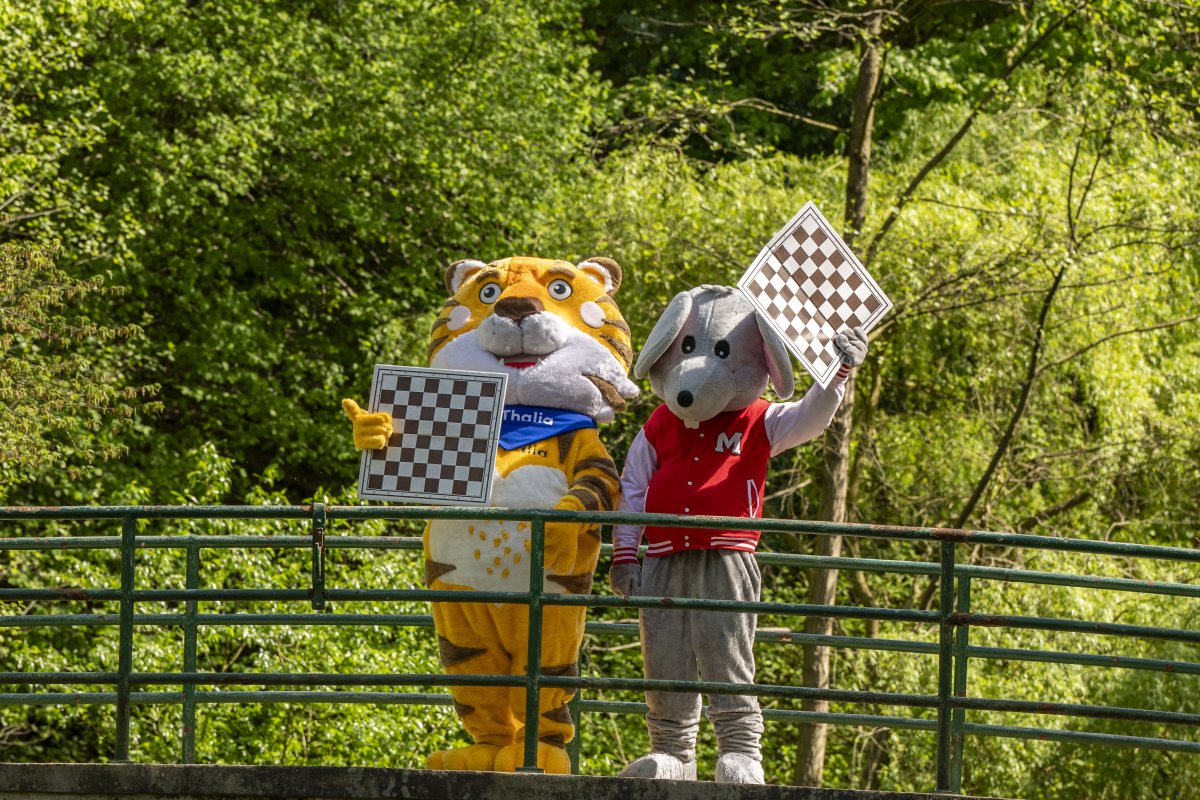 05.05.2025 – Am 18 Juni ist es wieder so weit. Beim weltweit größten Schachturnier "Rechtes gegen linkes Alsterufer" treten Schulteams von beiden Ufern der Alster gegeneinander an und verwandeln den Hamburger Rathausmarkt wieder in einen großen Open-Air-Turnier"saal". Die Maskottchen der beiden Hauptsponsoren Thalia und Haspa, Thalino der Buchstabentiger und Manni die Maus sind schon voller Vorfreude. | Fotos: Nils Rhode