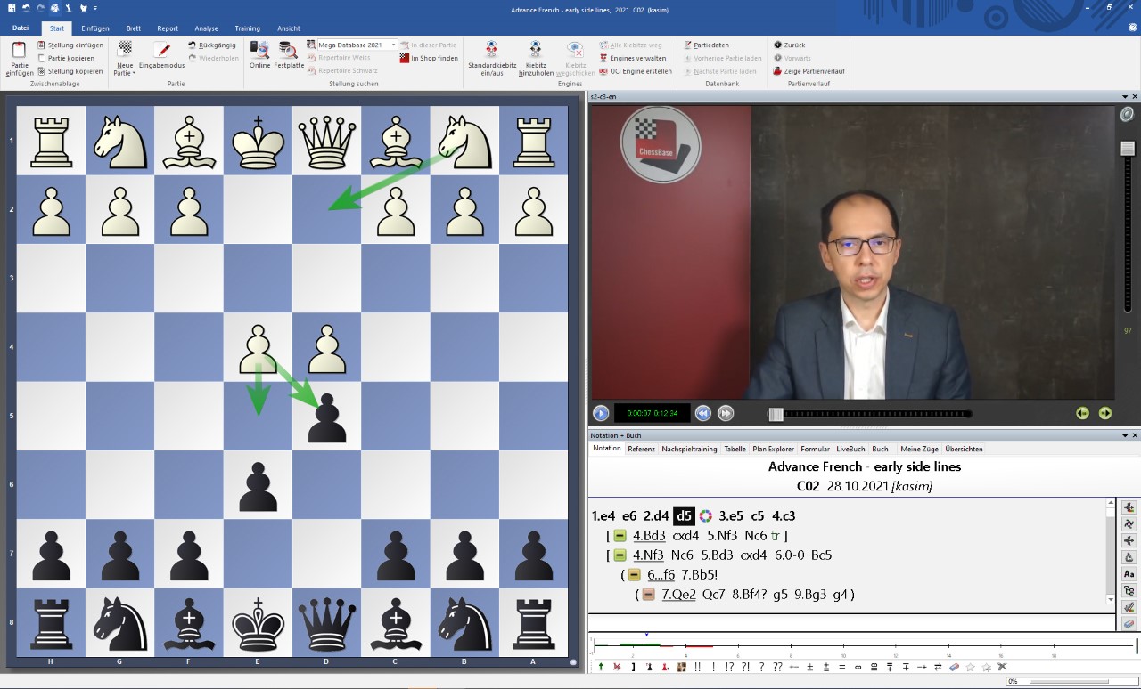 04.05.2022 – Die Französische Verteidigung ist eine der beliebtesten Eröffnungen - vom Vereinsspieler bis zum Großmeister. Sie ist eine sehr solide Eröffnung gegen 1.e4, lässt aber Raum für Gegenspiel und Initiative. In diesem zweibändigen Videokurs zeigt Ihnen der ehemalige Weltmeister und Startrainer Rustam Kasimdzhanov, was es mit dieser äußerst komplexen Eröffnung auf sich hat.