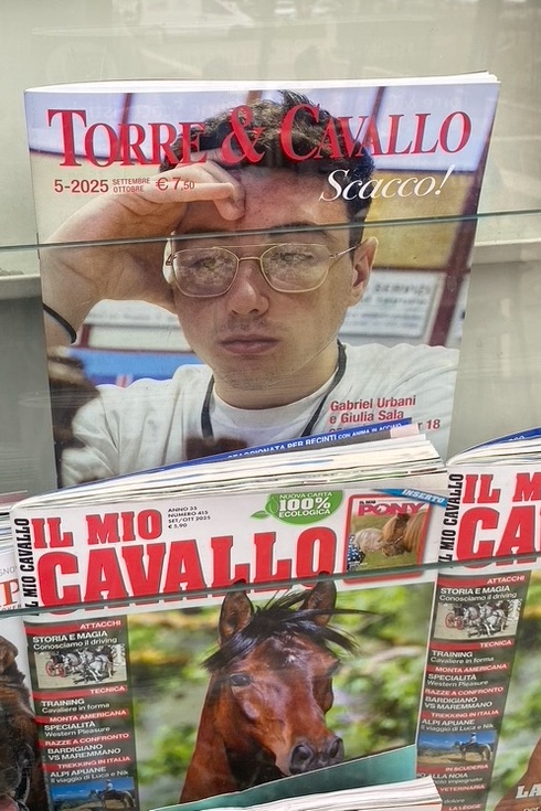 Die abgebildete Person auf dem oberen Magazin sieht sehr nach einem Schachspieler aus, so dass ich auch mit sehr begrenzten Italienischkenntnissen auf ein Schachmagazin tippte. Eine kurze Internetrecherche bestätigte die Vermutung, es ist wirklich eine Schachzeitschrift. Torre & Cavallo ist die einzige regelmäßig erscheinende Schachzeitschrift in italienischer Sprache. Ganz nebenher habe ich bei der Recherche folgende Vokabeln gelernt.