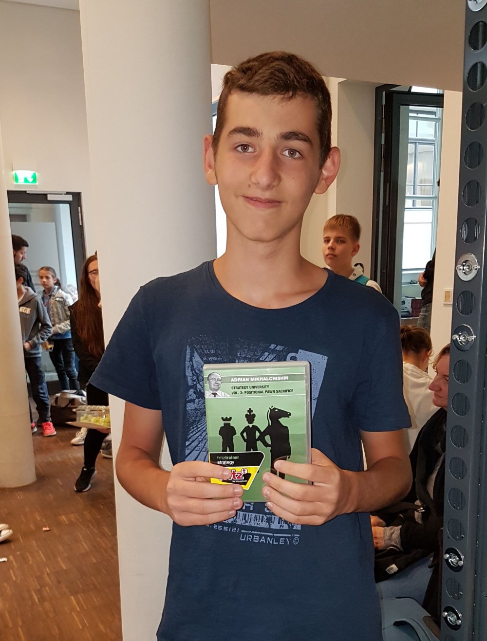 Adrian Mikhalchishin hat viele Video-DVDs bei ChessBase veröffentlicht. Einige dieser DVDs wurden wurden als Preise für die Teilnehmer ausgelobt. So erhielt auch der Sieger des Konditionsblitzturnieres, Marco Dobrikov eine der instruktiven Lehr-DVDs aus dem ChessBase Verlag.