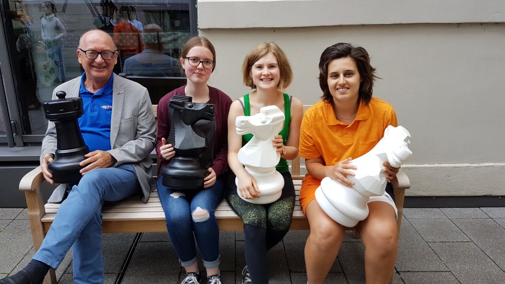 Julia Bossert „scheuchte“ Hanna Marie, Fiona und Annmarie durch den Park und brachte sie gehörig außer Puste. Die Bedingungen im Schachzentrum Baden-Baden suchen deutschlandweit ihresgleichen. Hier treffen High-Tech auf Ambiente und Old-School auf Innovation; und die Schachspieler sind mittendrin.