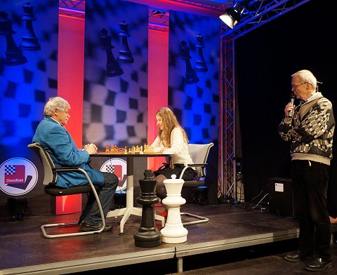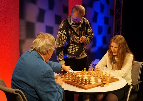 Eine ganze Woche lang haben Dr. Helmut Pfleger und Vlastimil Hort moderne Klassiker und Glanzpartien der neueren Turniergeschichte präsentiert und kommentiert. Anfang nächsten Jahres werden diese "Perlen" auf zwei DVDs veröffentlicht. Gestern nahmen die beiden Urgesteine der Schachunterhaltung noch an einer ChessBase-Schachsow. Vlastimil Hort spielte gegen Melanie Ohme und kommentierte seine Züge zusammen mit Helmut Pfleger. Heute sind die beiden "Dinosaurier" ("Ich bin Tyranno Rex, Chelmut ist Brontsoauriärr - er ist Vägätariärr", Hort) des Schachs zum Abschluss zu Gast bei TV ChessBase. Wenn Ihnen das Format gefällt und die Technik nicht zu kompliziert ist, werden sie die Sendung vielleicht übernehmen, wer weiß...