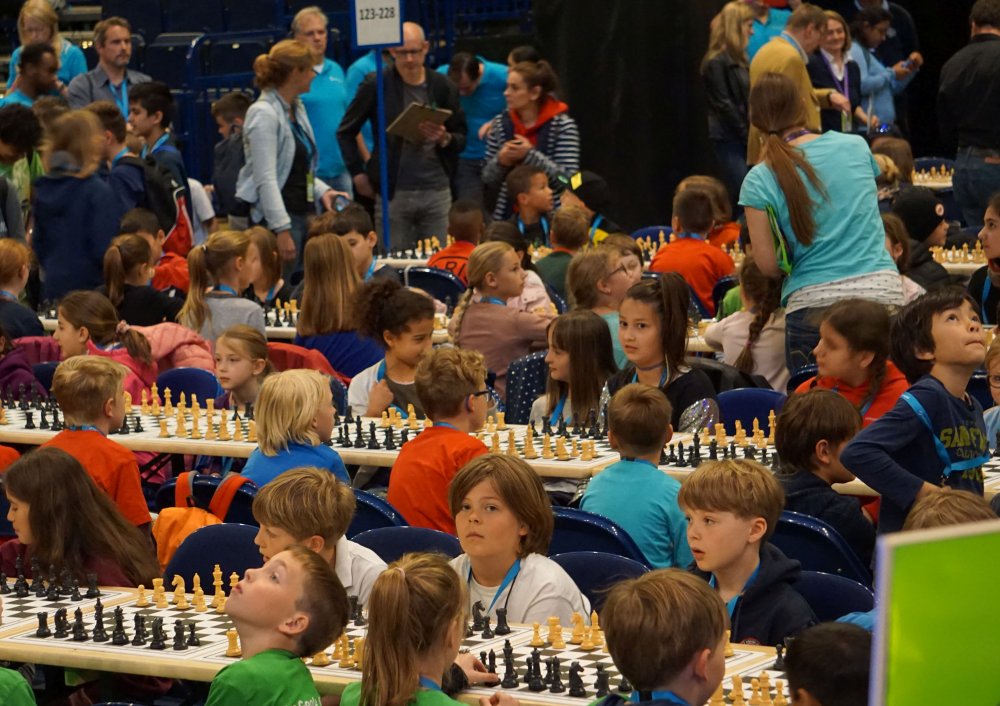 Die Grundschüler spielten dann ihre Wettkämpfe im Innenraum der Arena, die Schüler der Weiterführenden Schulen im Stage-Bereich. Während die Grundschüler zwei freie Partien spielten, ohne Uhr, wurde bei den Weiterführenden Schulen schon unter richtigen Turnierbedingungen gespielt: eine Partie mit 20 Minuten Bedenkzeit für jeden Spieler.