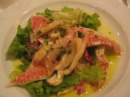 sieht sie als Vorspeise auf dem Teller im ausgezeichneten Restaurant "La Daurade"