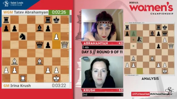 24.10.2020 – Zwei Runden vor dem Ende der US-Frauenmeisterschaft steht weiterhin Irina Krush mit einem halben Punkt Vorsprung an der Tabellenspitze. 6,5 Punkte hat die einzige Großmeisterin im Turnier aus den bislang gespielten neun Runden herausgeholt. Mit jeweils 6,0 Punkten befinden sich Carissa Yip und Dorsa Derakhshani aber ebenfalls in aussichtsreicher Position, so dass sich bislang nicht sagen lässt, wie der Titelkampf letztlich enden wird. Die beiden letzten Runden werden heute gespielt, ab 20 Uhr deutscher Zeit. Das Turnier wird online als 25+5-Rapidturnier ausgetragen. | Fotos: Saint Louis Chess Club