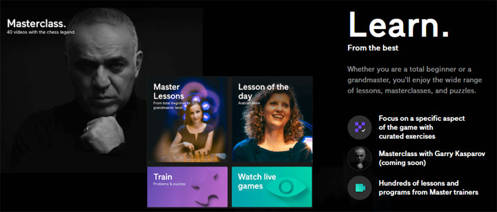 Interaktive Schach-Community und Content-Plattform bietet Online-Schachlektionen, Matches, Dokumentationen und eine demnächst eine exklusive Meisterklasse mit Garry Kasparov