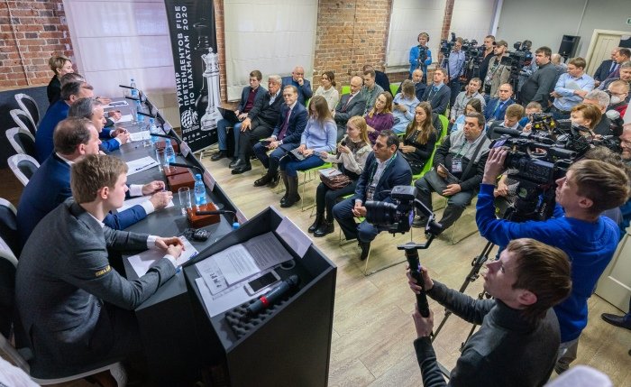 Kirill Alekseenko, der Wildcard-Teilnehmer des Kandidatenturnies, war als Vertreter der Spieler bei der Vorpresseveranstaltung anwesend. Er bedankte sich für die Einladung und fügte hinzu: "Natürlich werde ich um einen Sieg spielen, da nur der erste Platz die Möglichkeit bietet, Magnus Carlsen herauszufordern.