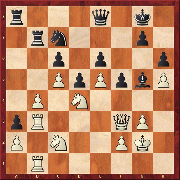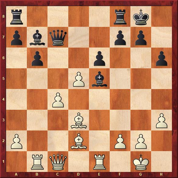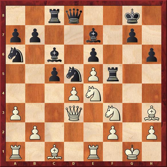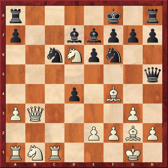 Weiß greift am Damenflügel an, doch Schwarz startet mit 16...g5 eine siegbringende Attacke auf der anderen Seite des Brettes.