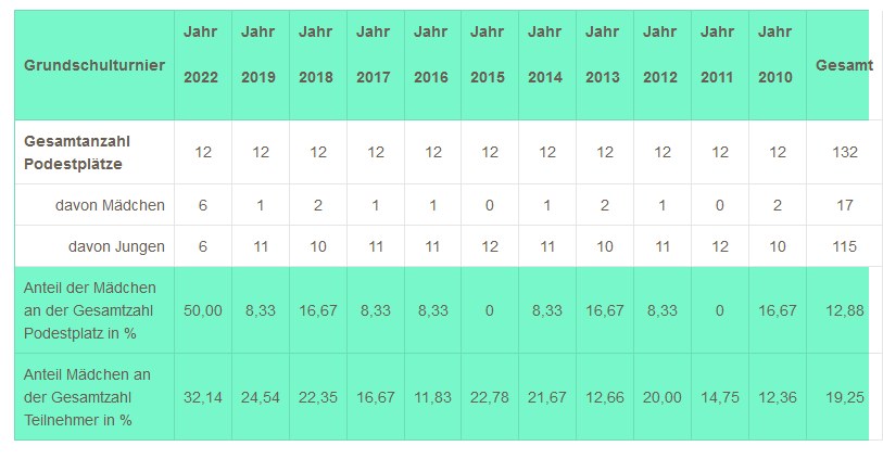 Übersicht und Statistiken zum Schachturnier der Grundschulen des Vogtlandkreises von 2010 bis 2022: Grundschulturnier-Statistiken