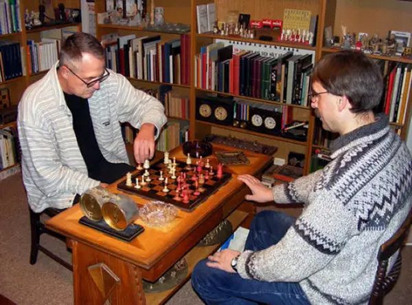 Eine Partie gegen den bekannten Schachsammler und -historiker Hans-Jürgen Fresen - gespielt in dessen 'Schachmuseum' mit dem 150 Jahre alten Original-Schachspiel von Adolf Anderssen. | Foto: Johannes Gross
